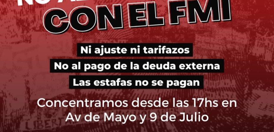 ´´No hay ni habrá nada bueno para los trabajadores y el pueblo acordando con el FMI. Además de que va a seguir la inflación y los bajos salarios y jubilaciones si no lo enfrentamos, crecerá el ajuste, la entrega de nuestros recursos naturales, el sometimiento y la dependencia. A tal punto que ni bien se anunció el acuerdo el gobierno pagó otros 1.100 millones de dólares al FMI, plata que debería haber ido a aumentar los salarios y jubilaciones, a los hospitales, no a los usureros internacionales.´´