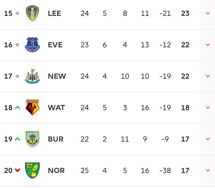 Cabe destacar, también, que los puestos por el descenso siguen encendidos y duvitativos, ya que gracias a las victorias de Watford y Burnley los puestos de descenso quedan para seis equipos en los que se encuentran el Leeds de Bielsa.