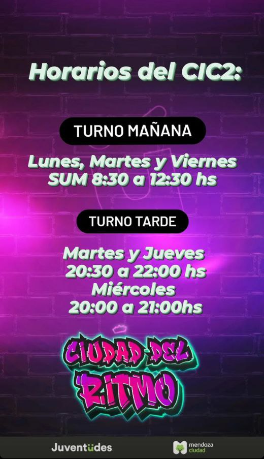 Ciudad del ritmo es una propuesta para ayudar a artistas que posean un lugar físico para aprender o enseñar sus actividades, poniendo a disposición los espacios de la Ciudad de Mendoza.